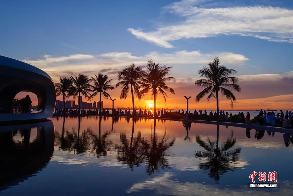 游客在海口湾云洞图书馆欣赏落日美景。凌楠 摄(资料图)