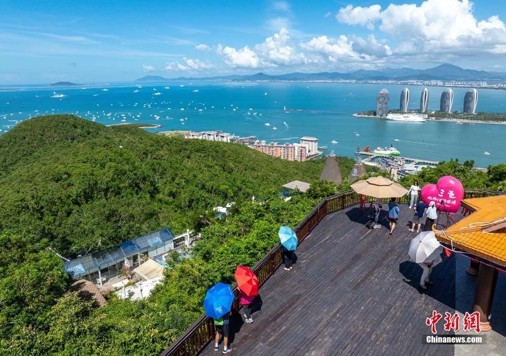在三亚鹿回头风景区俯瞰三亚湾风光。骆云飞 摄(资料图)