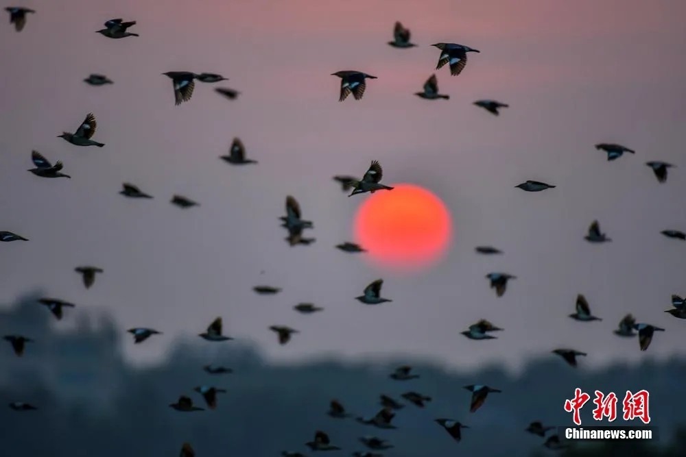 与落日、晚霞同框