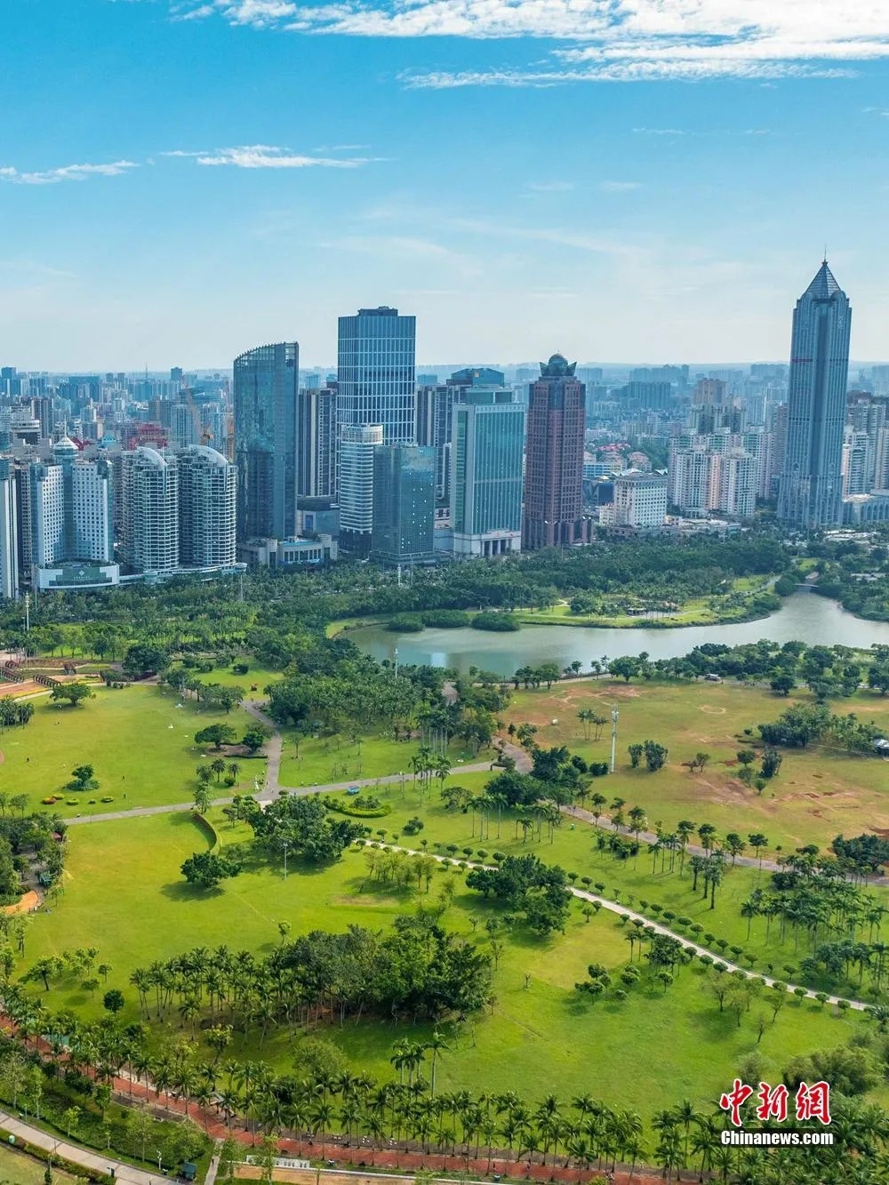 2025年11月21日,海南省海口市滨海大道楼宇和万绿园。骆云飞 摄