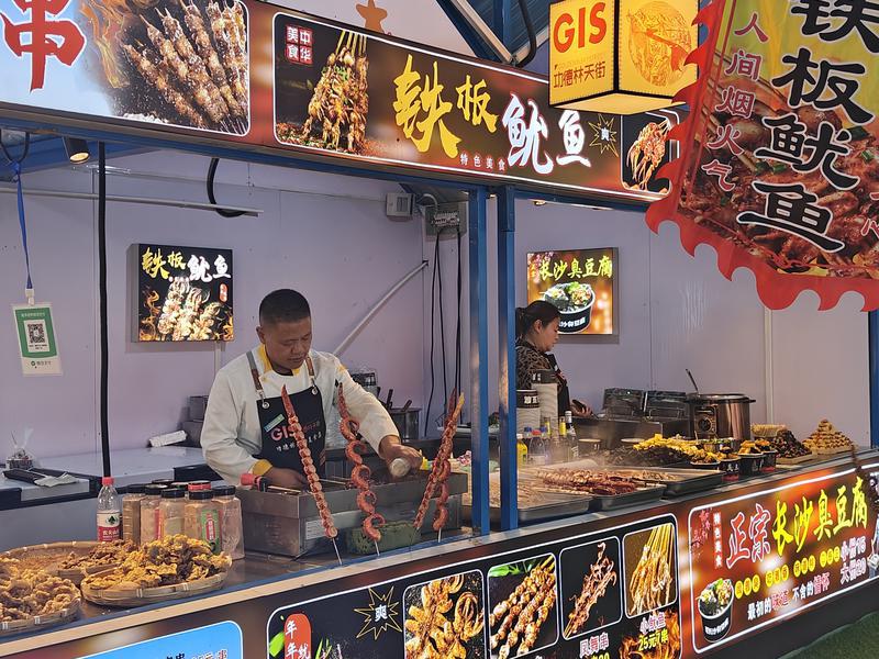 12月3日晚上8点,记者来到功德林天街的夜市,琳琅满目的商品让人目不暇接。远远望去,一辆辆醒目的小吃餐车一字排开,各种特色小吃在灯光的照射下愈加色泽鲜亮、令人垂涎欲滴,煎炸蒸煮的味道挑动着行人的味蕾,摊主们一边麻利地烹制出美食,一边招揽着生意,不少市民驻足停留,品尝一份人间烟火,享受生活惬意时刻。