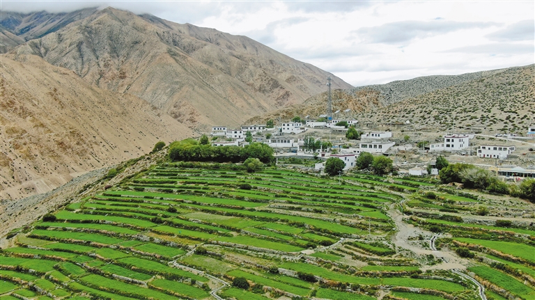 航拍普兰县普兰镇科迦村斜尔瓦组。 记者 洛桑旦增 摄