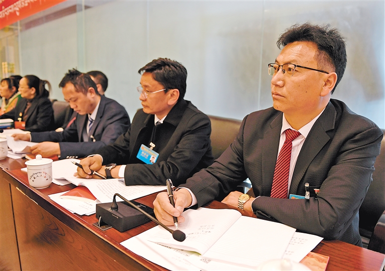 阿里代表团审议政府工作报告。记者 旦增兰泽 摄