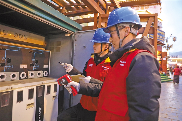 为守护好雪域高原万家灯火,自1月以来,国网西藏电力组织各级干部员工下现场、查隐患,访客户、除故障,多措并举全力做好电力保供各项工作。积极保障电网安全。开展一二次设备、“三道防线”、事故预案等安全校核,并优化电网方式安排,春节、藏历新年期间西藏电网保持“全接线、全保护”方式运行,确保大电网安全稳定。落实隐患整治。针对冰冻、山火等风险,加大对所属变电站、线路特巡特护,排查隐患369项,消缺322项,确保重要变电站、输电断面安全稳定运行。强化应急保障。建立与气象、应急等部门的协调联动机制,落实应急队伍、物资等布点安排,投入较日常1.5倍及以上的运维抢修力量,全力满足节日期间抢修需要,确保群众过节“亮堂堂”。