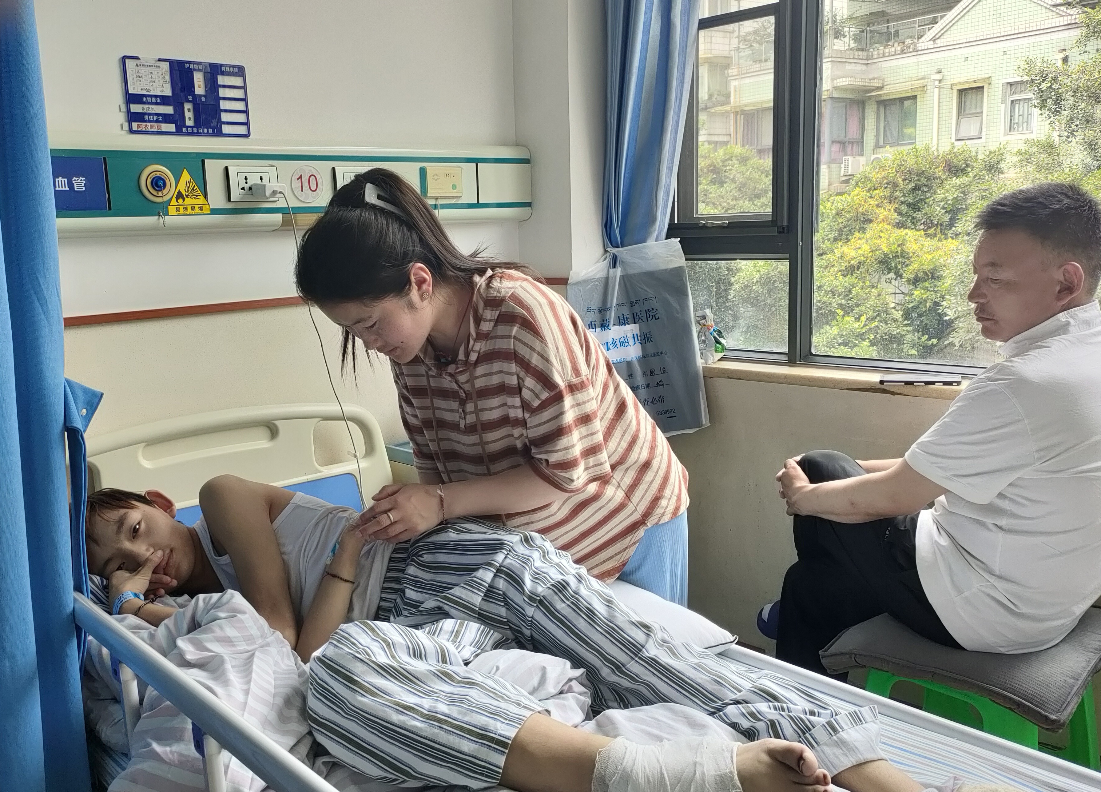 帕那镇卓格社区群众突发疾病,腿部血管破裂,并出现大出血症状。因病情较为严重,急需转至内地医院就医。驻村干部康吉主动请缨,放弃自己的事业岗位考试机会,远赴成都承担起翻译、护工、导医、众筹等志愿服务,为患者打通了一条生命的绿色通道。