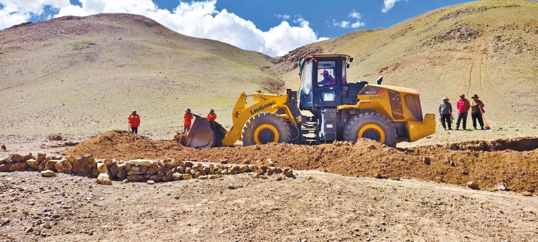 驻措勤县达雄乡才扎村工作队为群众维修秋季转场道路。 记者 永青 通讯员 旦增尼玛 王飞洋 摄