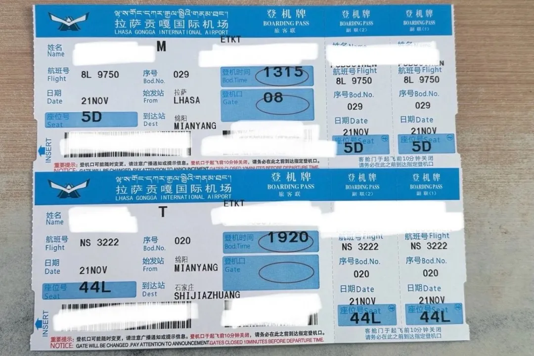 图为经绵阳中转的跨航司中转登机牌样式。