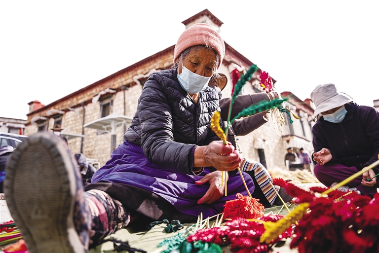 “最能表达新年的祝愿,莫属桑木的罗萨梅朵;桑木的罗萨梅朵,最能传递真诚的祝福。”2月19日,伴随着悠扬的歌声,记者走进了拉萨市堆龙德庆区桑木村。这里距离拉萨市约18公里,全村共有157户、700余位村民,几乎家家户户都保留着祖辈传承的“罗萨梅朵”制作技艺。2018年,桑木村的“罗萨梅朵”染色技艺被列入拉萨市级非物质文化遗产名录。