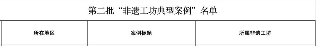 根据《文化和旅游部办公厅 人力资源社会保障部办公厅 农业农村部办公厅关于推荐第二批“非遗工坊典型案例”的通知》安排,文化和旅游部、人力资源社会保障部、农业农村部组织开展了第二批“非遗工坊典型案例”(以下简称“典型案例”)推荐工作,在各地积极申报的基础上,经研究遴选并经公示,确定了51个典型案例,现将名单予以公布(见附件)。