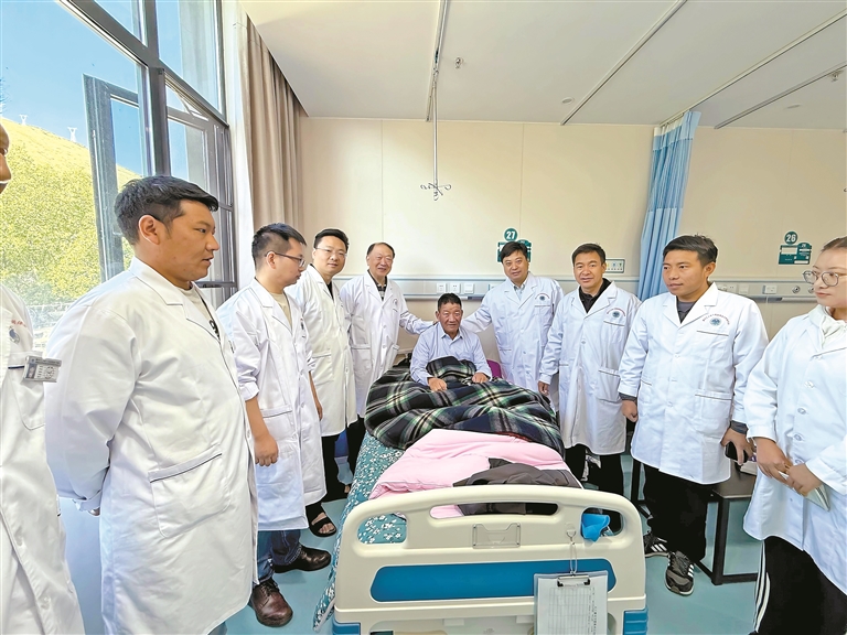 医务人员检查患者术后恢复情况。记者 格桑伦珠 摄