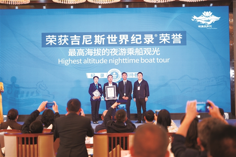 《情满拉萨河》启幕现场,中国首位吉尼斯世界纪录认证官吴晓红受邀登台,正式宣布该项目“最高海拔的夜游乘船观光”挑战成功,并现场颁发认证证书。9月28日,认证官全程参与测绘,从夜游路线设计、安全保障到文化呈现,均符合吉尼斯世界纪录认证的严苛标准。此次认证不仅填补了世界高海拔地区夜间水上观光类项目的空白,更印证了中国在高原旅游领域的产品设计、施工建造、生产运营、创作能力达到世界领先水平。该荣誉纪录的诞生,为同类项目的国际认证与品质提升提供了重要范本,标志着拉萨文旅发展迈入国际化新阶段。