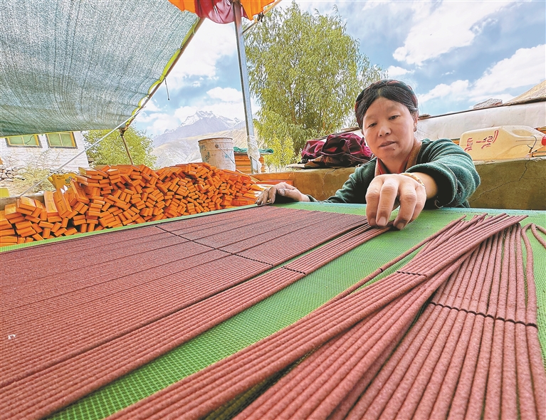 图为工人在晾晒制作好的藏香。记者 白玛泽旺 次仁平措 摄影报道