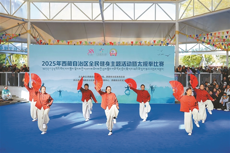 12日,由西藏自治区体育局、西藏自治区体育总会主办,西藏自治区体育彩票管理中心、西藏自治区武术协会承办的2025年西藏自治区全民健身主题活动暨太极拳比赛在拉萨市宗角禄康公园举行。