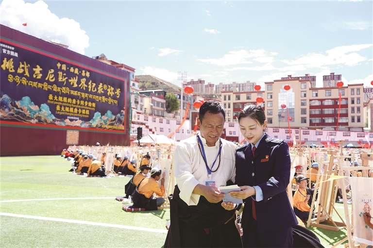 商报讯(通讯员 德西卓玛 记者 芮怡星)当1138名画师在西藏昌都市卡若区共同创造“最大规模唐卡课程”和“最大规模的唐卡同步绘制”两项吉尼斯世界纪录时,一抹“税务蓝”也悄然融入这片艺术的海洋。国家税务总局昌都市税务局“卓卓税宣小分队”穿梭其间,将精准的税惠政策送至活动现场,为这场文化盛事增添了一抹特别的“税务蓝”。