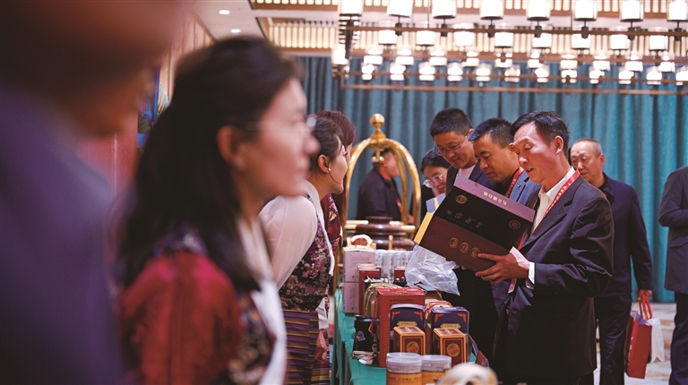 正在推介会上了解特色产品的嘉宾。记者 旦增玉珍 摄