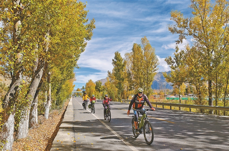 走出城区,曲水县与墨竹工卡县的田园秋色渐次展开,大地流金。蜿蜒的公路间偶有自行车队穿行,人影掠过,为宁静的秋日注入跃动的气息。