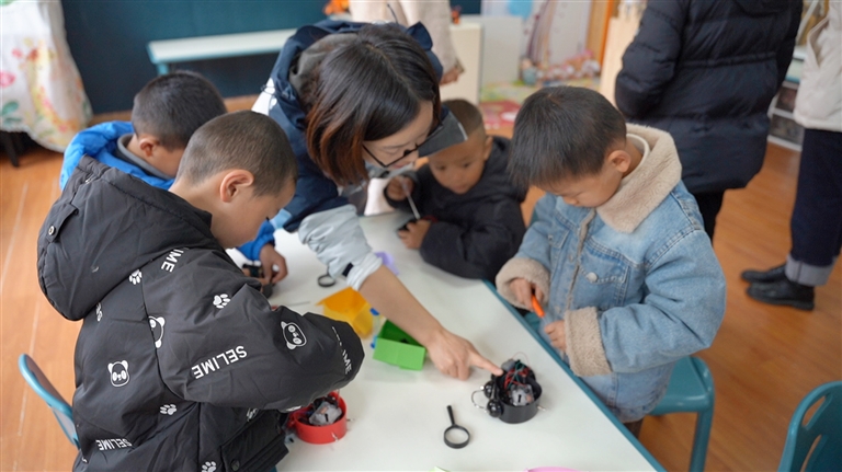 老师正在指导孩子们拆解玩具零件。记者 次仁旺姆 摄