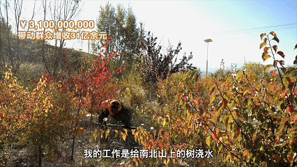 我的工作是给南北山上的树浇水 ,我家三口人在这儿工作 ,一年共有13万多收入,为此我特别感谢政府。