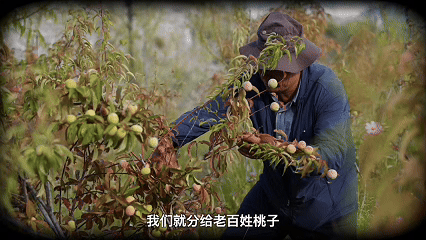 这是内地的红叶李,树苗很小的时候种的,现在长这么高了。下面一大片是光核桃和山杏。这两天我们把桃子分给了老百姓,他们很高兴,种树的积极性也高了,当前我们还建成了游泳池、沙滩排球、足球场、篮球场,以后我们老百姓还会往旅游方面发展。
