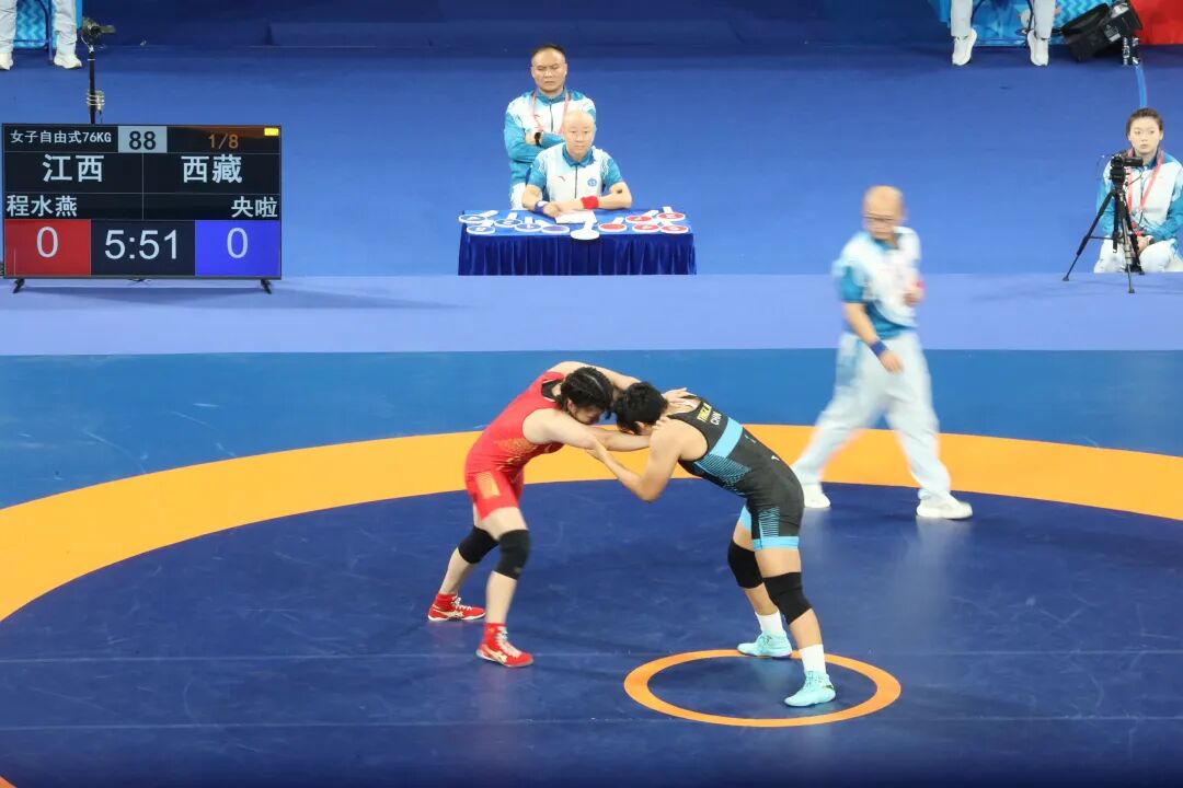 图为第十五届全运会摔跤女子自由式76公斤级比赛现场。记者 明吉 晓勇 郑璐 摄