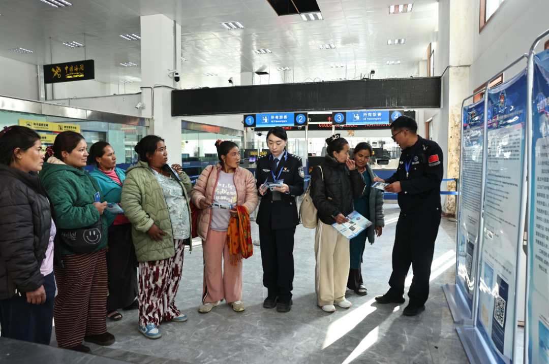 图为聂拉木边检站民警为旅客讲解新政策。胡定熠 摄