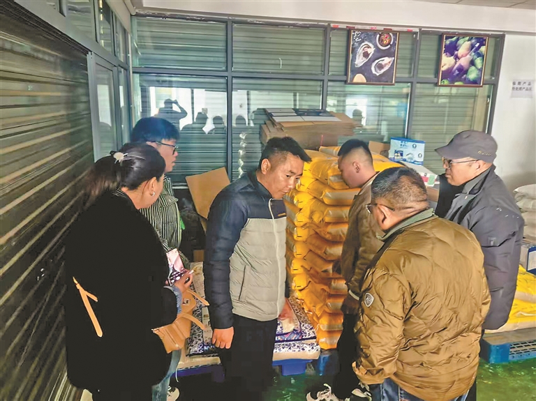 图为林周县教育局等相关单位工作人员在拉萨某农贸市场开展调研。记者 央金 摄