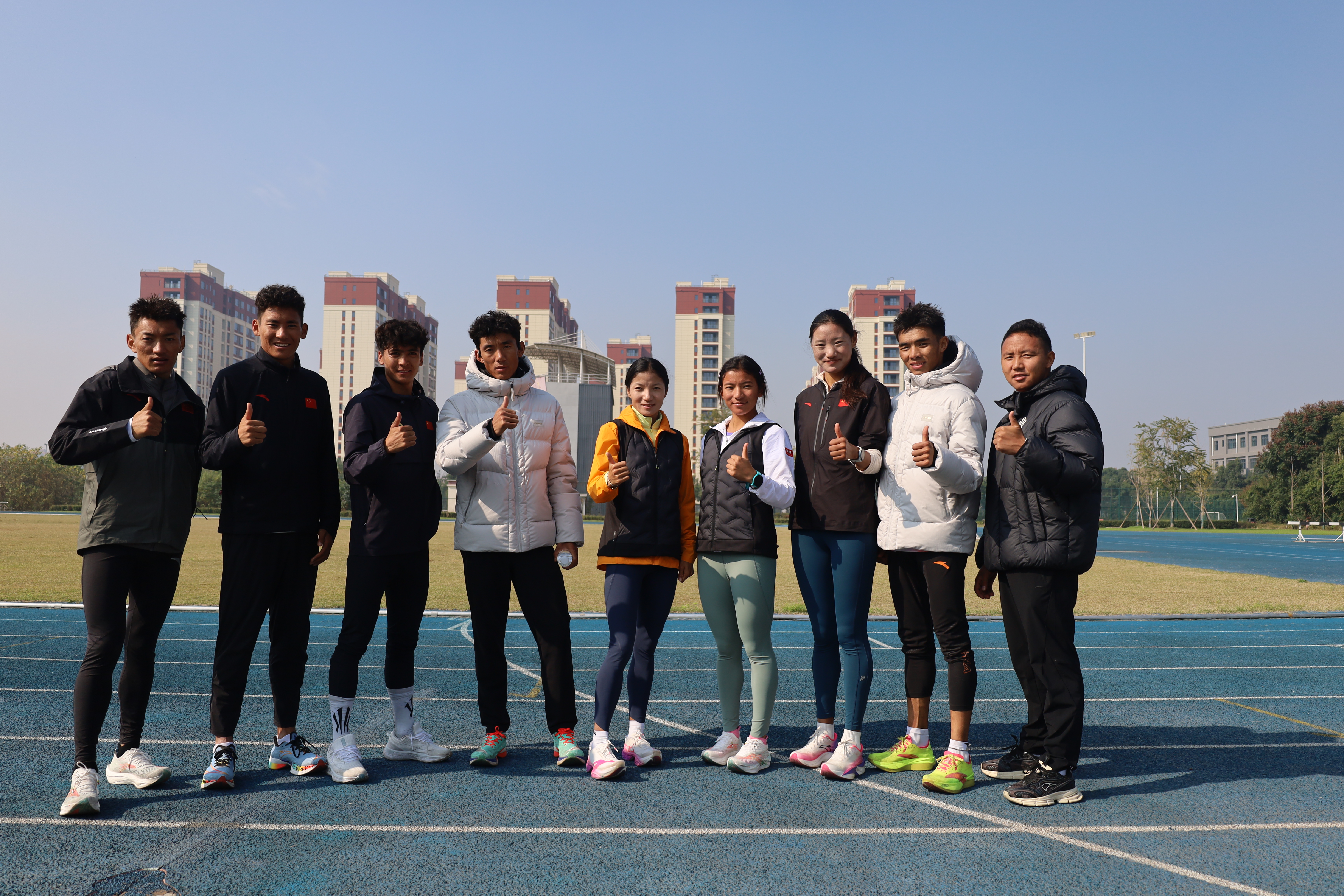 图为我区部分田径运动员在彭山训练基地合影。记者 郑璐 晓勇 明吉 摄