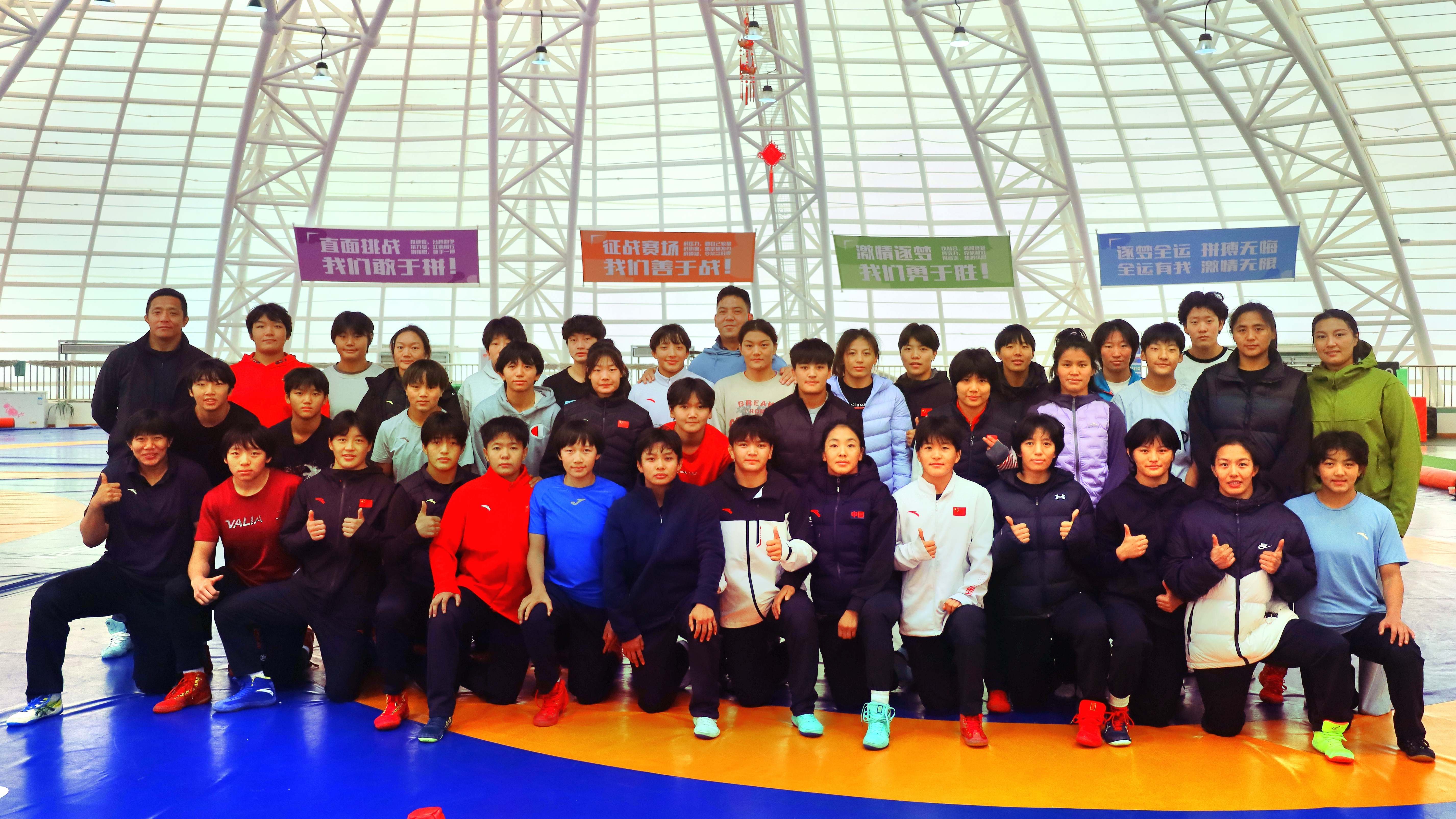 图为我区部分摔跤运动员在彭山训练基地合影。记者 郑璐 晓勇 明吉 摄
