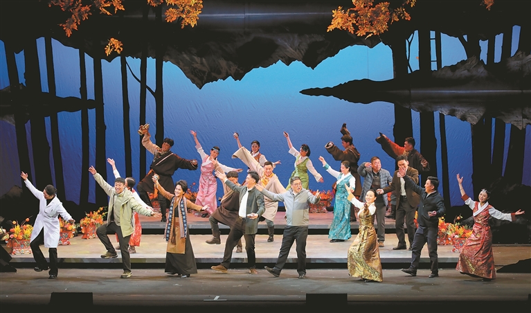 近日,由北京援藏指挥部、拉萨市城关区人民政府、北京演艺集团联合打造的原创话剧《远方的拉萨河》在拉萨金城公主剧场连续演出。图为话剧演出现场。记者 格桑伦珠 摄