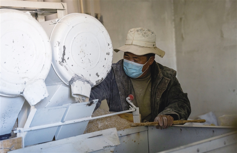 工作人员正在加工糌粑。