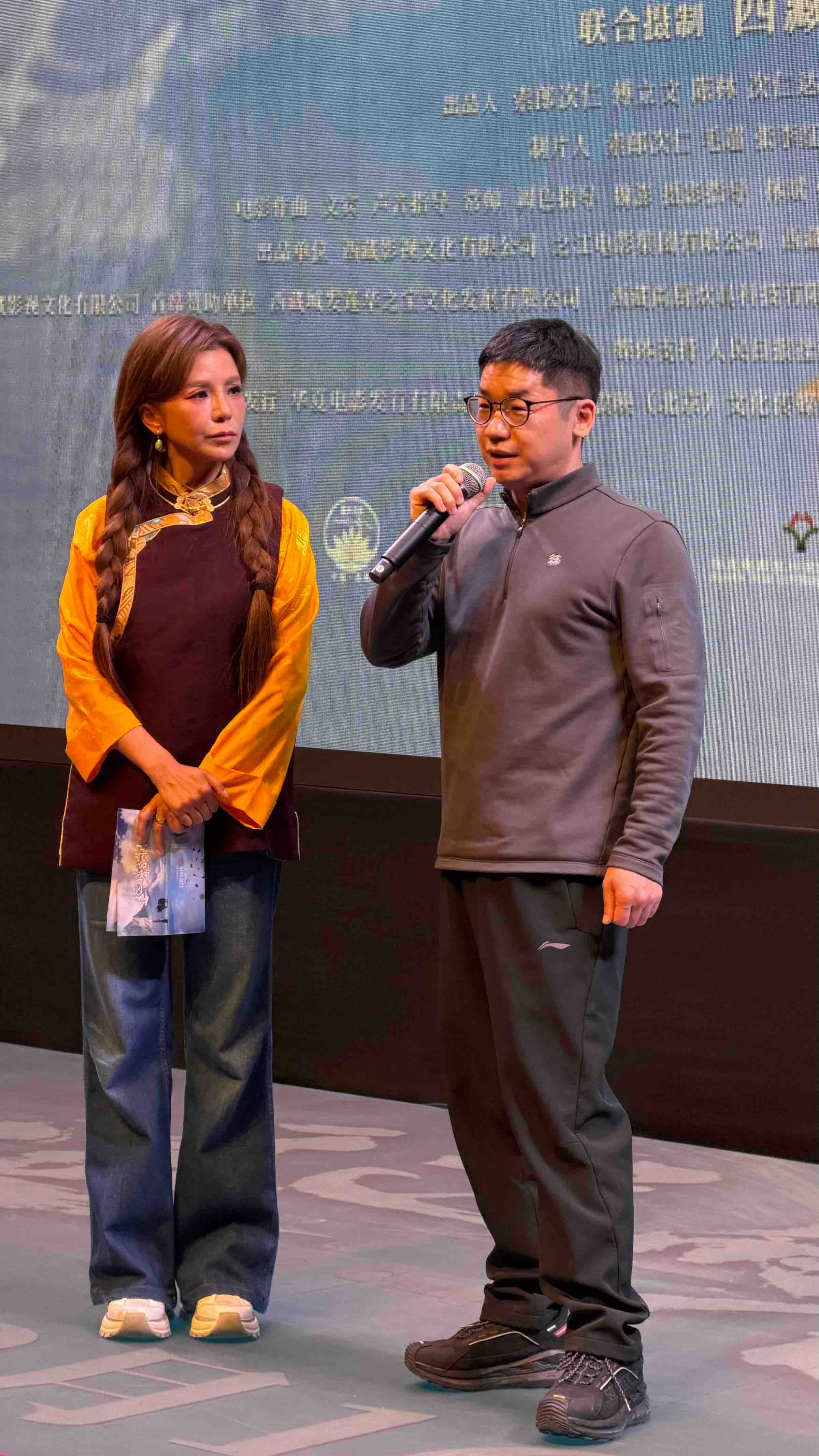 作为影片部分情节原型人物,那曲市生态环境局双湖县分局局长桑达措姆紧随其后说道:“我在双湖扎根十五年,初到时路途艰辛、环境恶劣,见证了许多伙伴因艰苦而离去甚至是牺牲,但我放不下当地牧民与心中的信念,所以选择坚守,感恩主创团队将这份坚守搬上银幕,期盼这份精神被更多人读懂。”