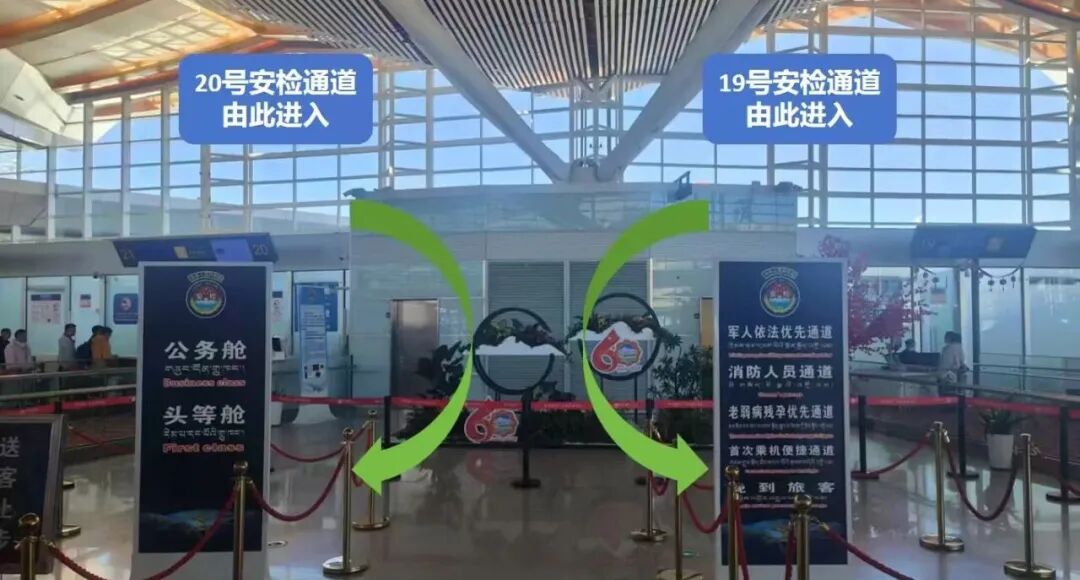 具体调整内容如下:拉萨贡嘎国际机场T3航站楼19号安检通道调整为军人、消防人员、老弱病残孕、首次乘机旅客、晚到旅客专用通道;20号安检通道更改为公务舱、头等舱旅客专用通道。