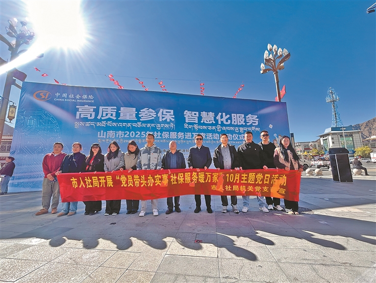 图为山南市人力资源和社会保障局机关党支部开展“党员带头办实事 社保服务暖万家”主题党日活动。