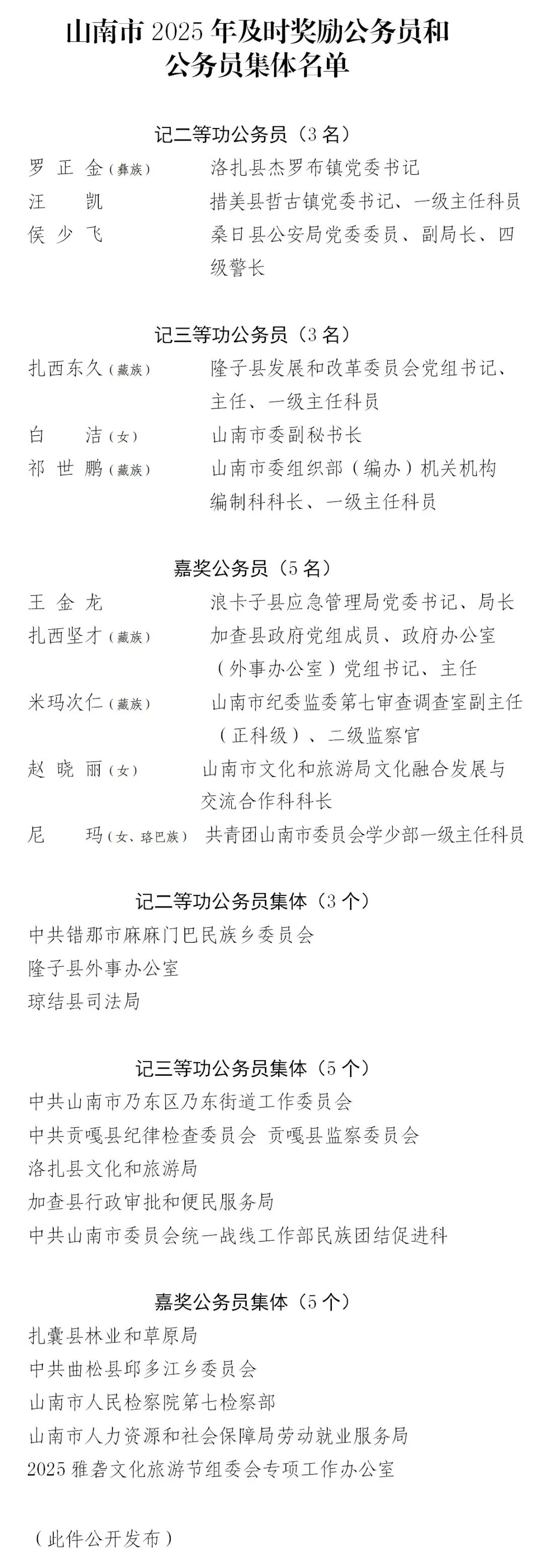 关于山南市2025年优秀公务员和公务员集体及时奖励的决定