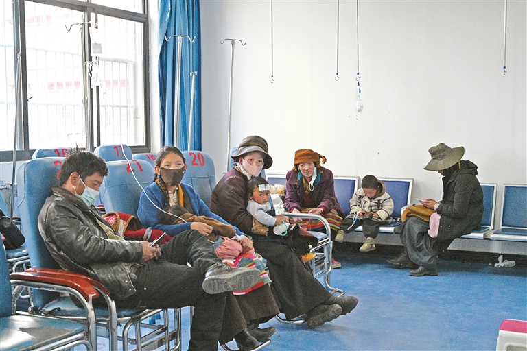 图为桑珠孜区中心医院内,前来看病的群众在输液。记者 扎西顿珠 摄