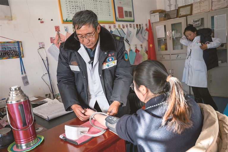 “你这心率有点快,回家别干重活,保持心情舒畅。”冬日的午后,夏鲁村卫生室里弥漫着淡淡的药香,58岁的普布扎西一边给村民卓玛量血压,一边耐心地叮嘱。这位扎根乡土36年的老村医,依然像一棵苍劲的老槐树,稳稳地守护着村里人的健康。