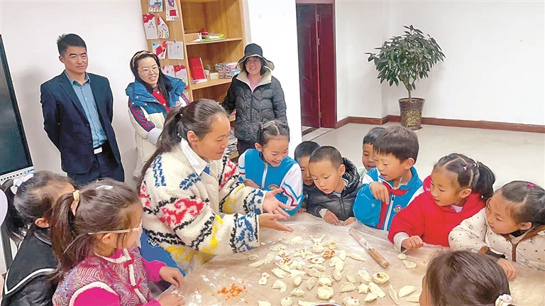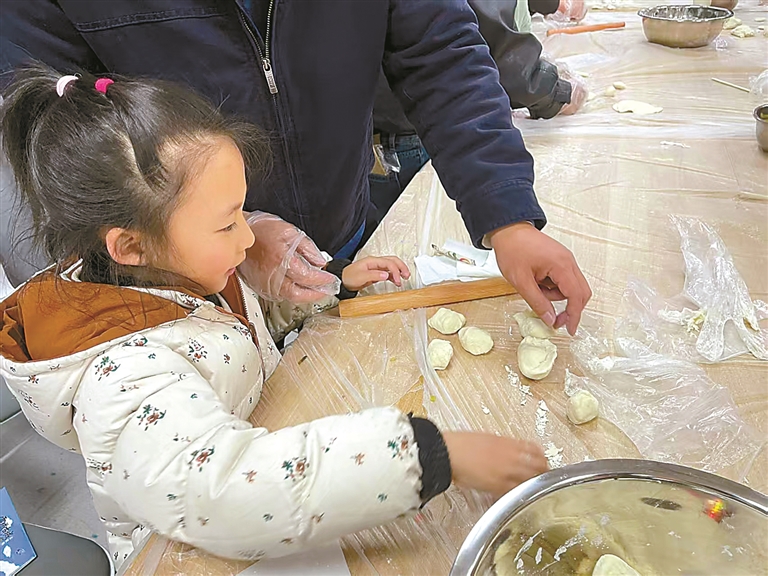 孩子们在学包饺子。记者 刘斯宇 摄