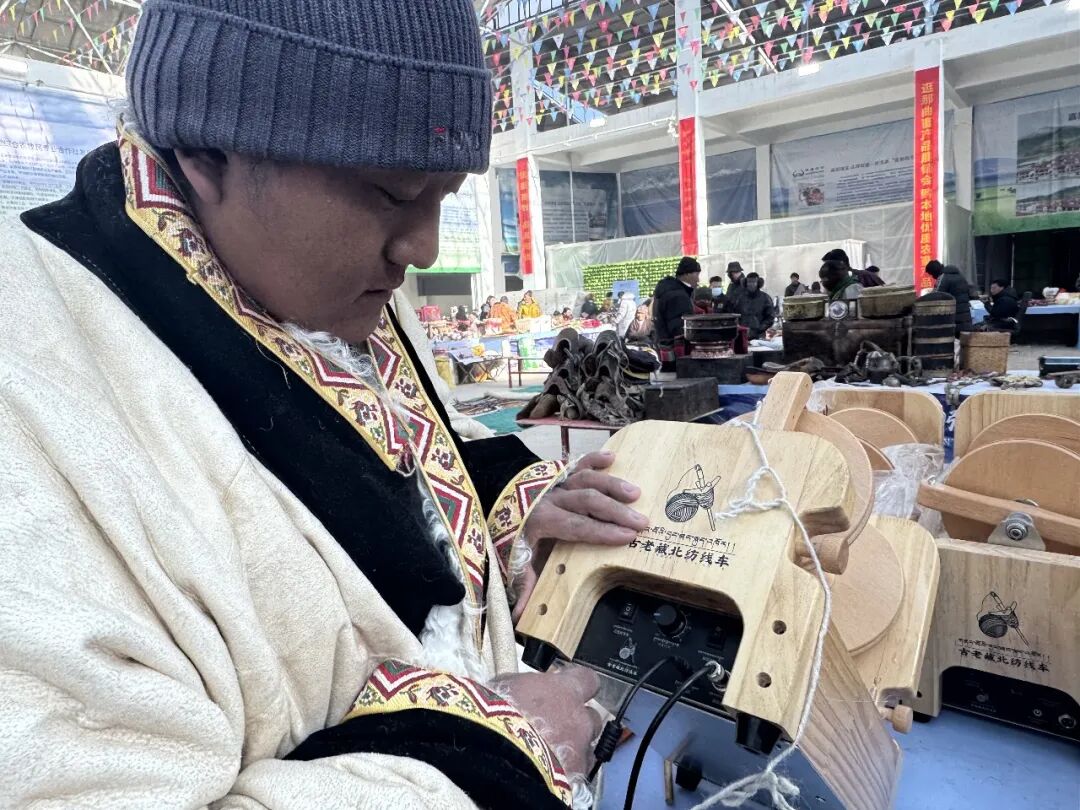 在近日开幕的那曲市第十八届畜产品展销会上,一台特别的电动纺线车吸引了不少人的目光。它结构简单,由线圈、电源和脚踏板组成,却自带自动纺线、绕线功能,成为展销会上的“人气王”。