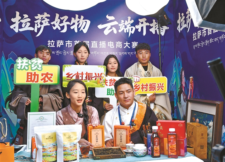 12月20日,由拉萨市商务局主办,以“拉萨好物·云端开播”为主题的拉萨市首届直播电商大赛决赛暨颁奖仪式在拉萨王府井购物中心举行。经过前期初赛选拔、赛前调研学习和集中交流,晋级的20名参赛选手同台竞技,通过直播实战比拼,集中展示直播电商能力与拉萨特色产品的市场潜力,为期16天的大赛圆满收官。整个赛事周期内,初赛与决赛累计带货总额达861万余元。