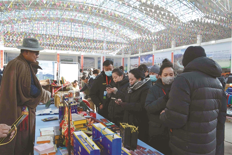 这次展销会不仅线下热闹,线上也同样火爆。为了让各类产品走得更远,展销会特意搭建起“线上直播带货+线下现场选购”的双线销售通道,一边是线下市民现场挑、现场买,新鲜看得见、品质摸得着;一边是主播对着镜头,向全国网友推介那曲好物,让远在千里之外的消费者也能品尝到那曲味道。同时,展销会还邀请电商平台、采购商代表和参展商精准对接,帮本土农畜产品打通销路,再也不愁“酒香巷子深”;积极引导机关、企事业单位及社会各界参与消费帮扶,以“以购代扶”“以买促销”的方式助力本土产业发展,在全市形成“人人支持本土产业、人人参与乡村振兴”的浓厚氛围。