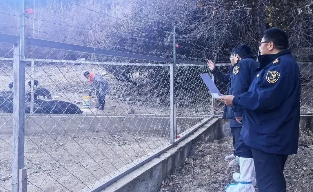 图为12月15日,拉萨海关所属林芝海关关员对藏香猪养殖场进行现场考核。