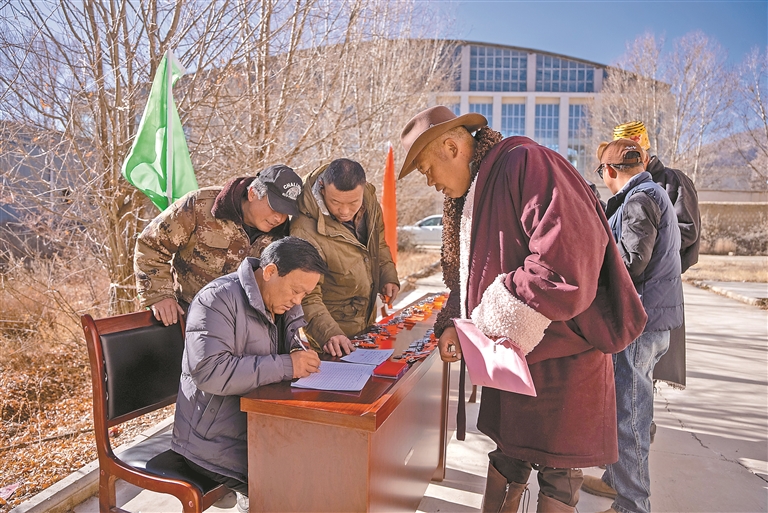 村民在领取新房钥匙。本网记者 阿旺尼玛 摄