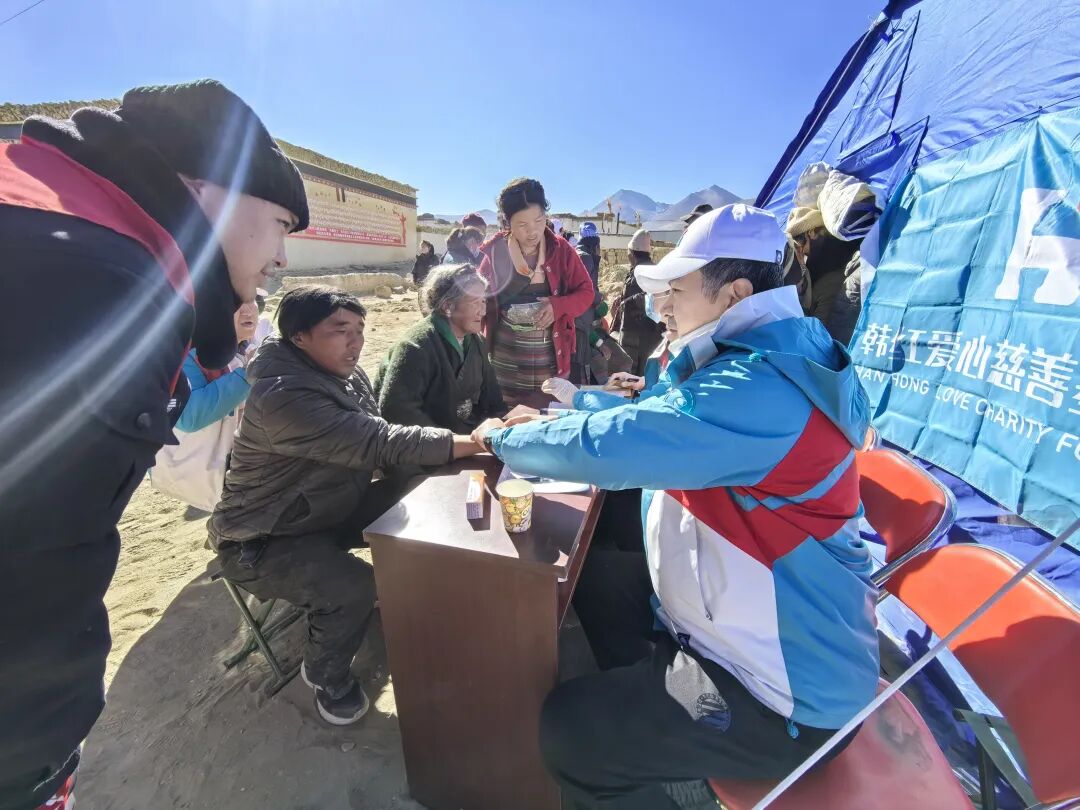 2025年1月9日,韩红爱心医疗专家志愿者团队在定日县曲洛乡措昂村为村民义诊。