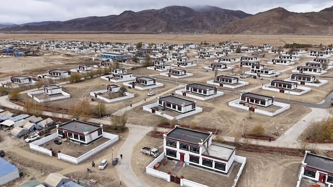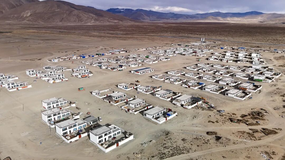 2025年12月31日,异址重建的萨迦县麻布加乡白拉村全景。