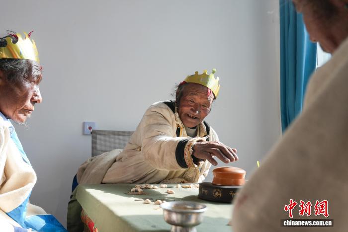 图为西藏定结县郭加乡切村,农村幸福院里,老人们在玩骰子。贡确 摄