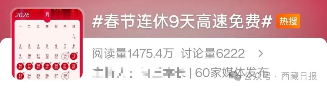 2026年全国春节高速免费时段为,2026年2月15日00:00至2月23日24:00,共计9天。