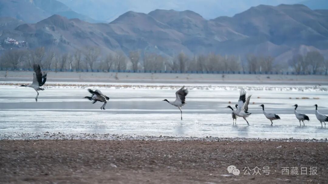 1月17日,天还未亮,拉萨市林周县卡孜水库的上空便回荡着黑颈鹤的鸣唱。