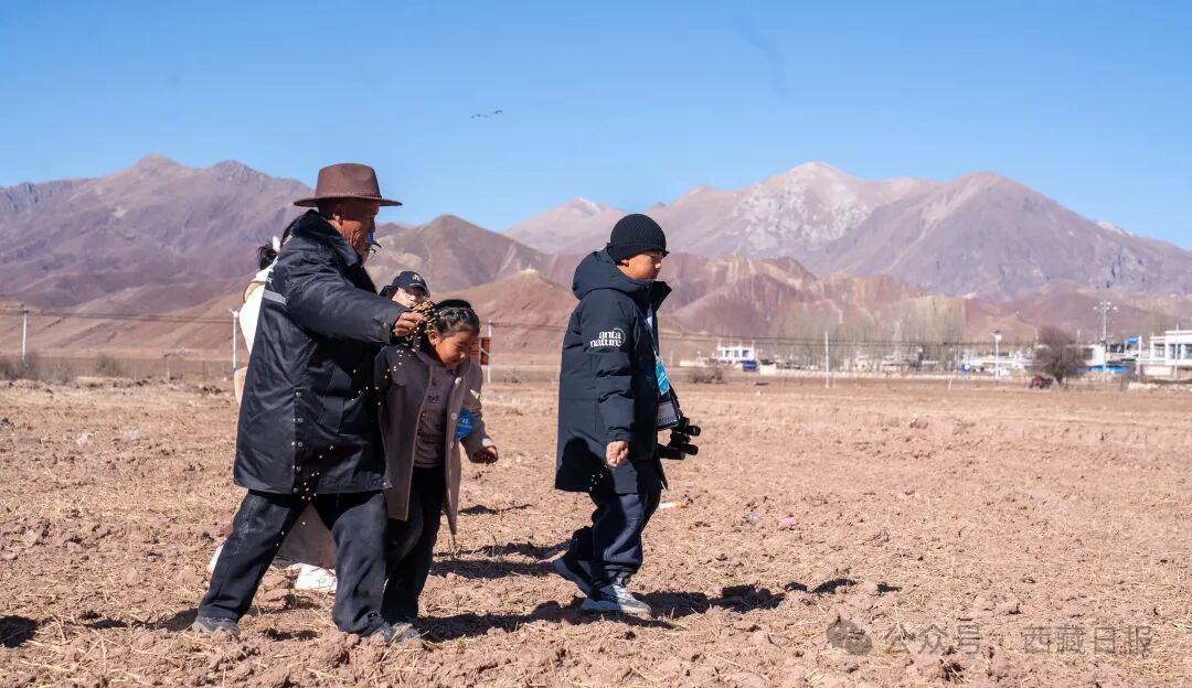 有孩子疑惑:“爷爷,小麦这么小,‘冲冲’能找到吗?”旦增抓起一把小麦撒向远方:“‘冲冲’的眼神好得很,能找到的!”