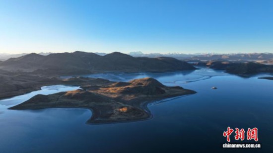 1月18日,西藏羊卓雍错流域沉错风光。沉错地处西藏羊卓雍错东部,是羊卓雍错水系重要组成部分,湖形狭长、湖水深邃,因湖底地形复杂得名。作为羊卓雍错流域内关键生态区域,沉错已成为众多候鸟越冬的乐园。(无人机照片)中新社记者 贡嘎来松 摄