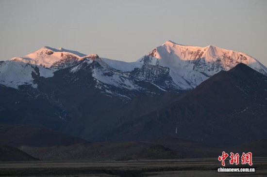 1月18日,沉错水域湖岸的雪山风光。中新社记者 贡嘎来松 摄